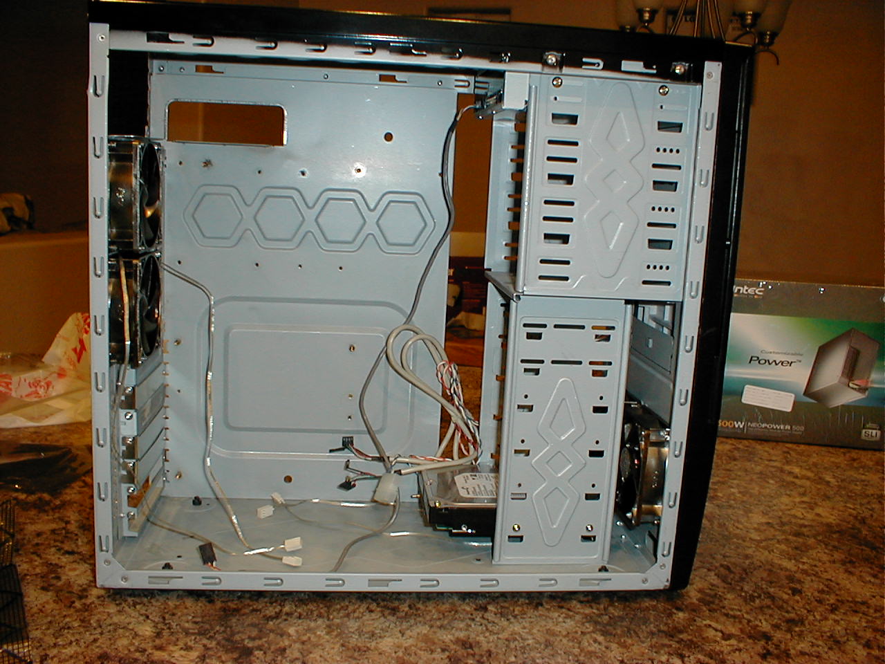 fans, new CPU cooler, and installing a (750GB) hard drive pulled out of