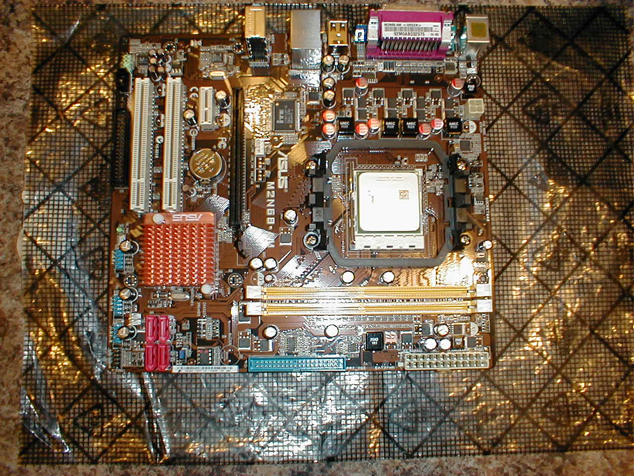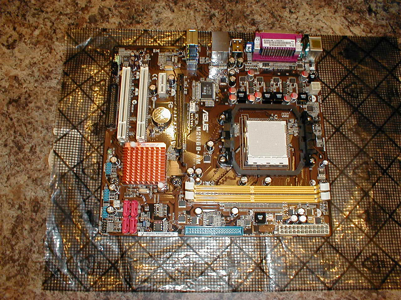 The first picture is of the brand new motherboard, you can see the