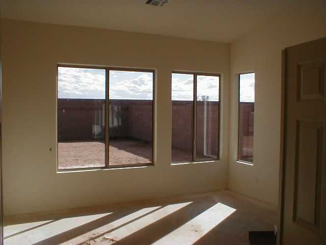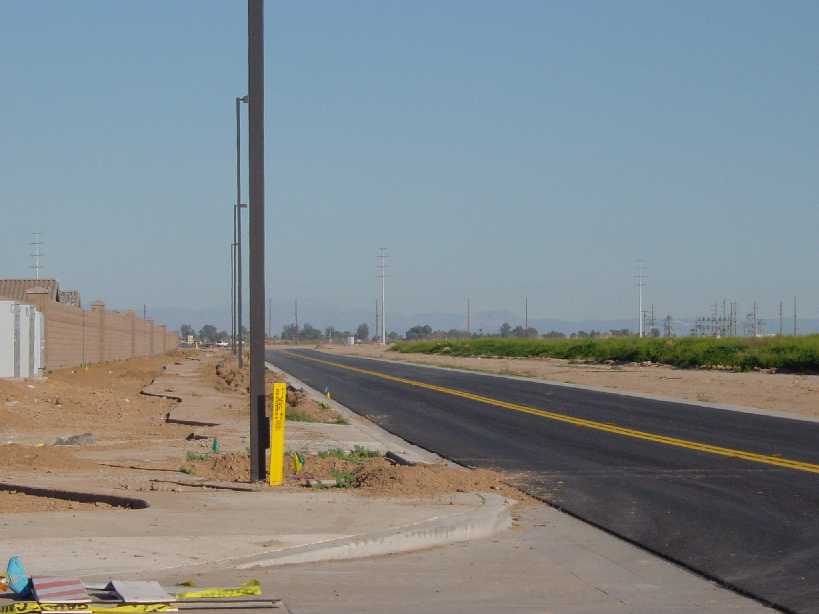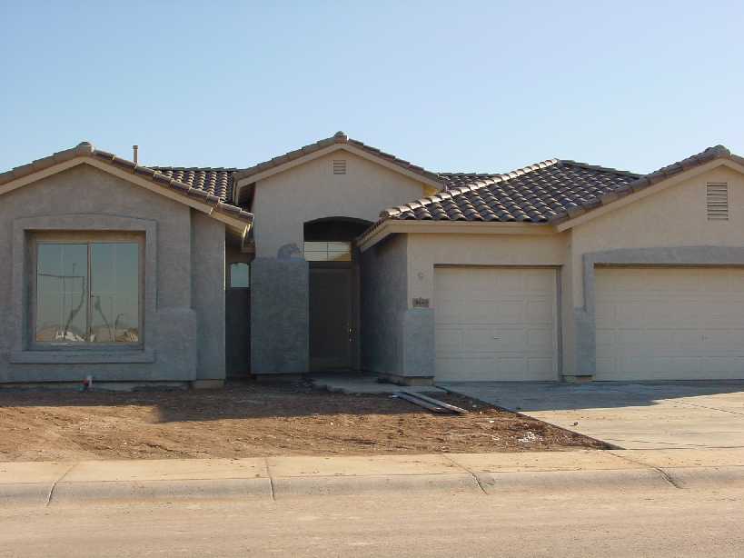 The first one shows the front of the actual home we are buying. It is an inventory home and they have it mostly finished. The second picture shows the street behind our house. The wall you see on the left is eight feet tall and will be the rear boundary of our back yard. I am also including a copy of the floorplan. If you want to see a copy of the floorplan with approximate dimensions, click here.