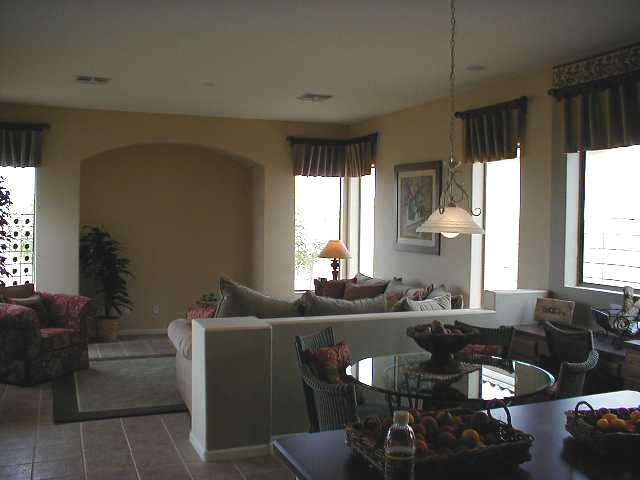 These are interior shots of the model home in Phoenix. This will show how our house could appear if it was furnished and decorated. Please note that the model home is an exact mirror image of our home. Everything which is right is left, and that which is left is right. Did that make sense?